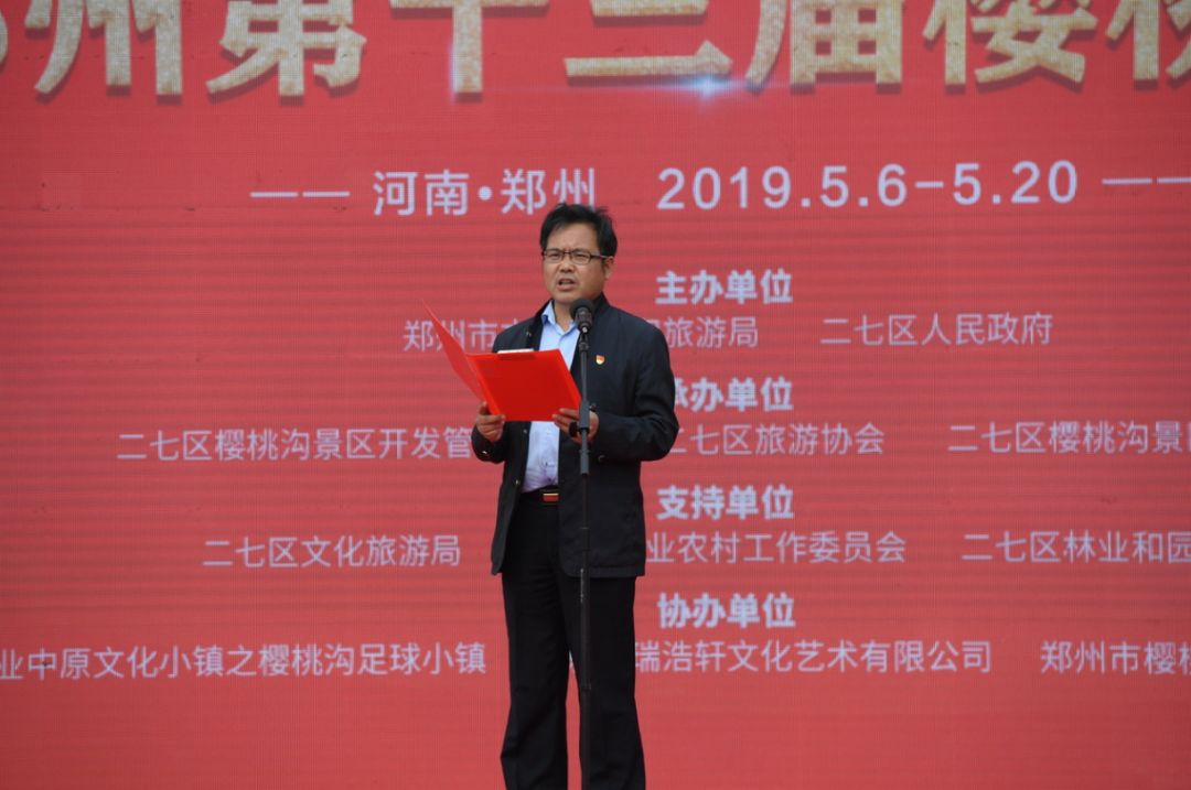 纵情漫烂五月天,樱桃红了迎客来。5月6日上午,第十三届郑州樱桃节在樱桃沟景区樱桃广场盛大开幕。郑州市文化广电和旅游局副局长何宏波、郑州市农业农村工作委员会副主任董锐、郑州市林业局副局长王斌、二七区政协主席张全金、二七区委常委宣传部长崔世英、二七区人大常委会副主任柳建华、二七区人民政府副区长蕫治会等领导、社会各界宾朋、游客1000余人参加了开幕式。