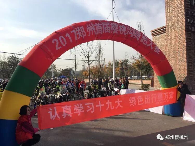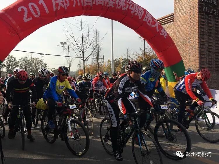 11月12日,由樱桃沟景区管委会主办、郑州长颈鹿体育文化传播有限公司承办、CCN骑行服等单位鼎力支持,以"挑战自我,超越极限,全民健身,增强友谊,团结互助,低碳生活,全民健身"为宗旨的首届樱桃沟骑跑大赛今天开赛。落叶纷飞,驰骋赛道,秋阳满地,一路风光……在樱桃沟景区田园风光的赛道上,享受运动的乐趣,感受原生态的亲和体验。