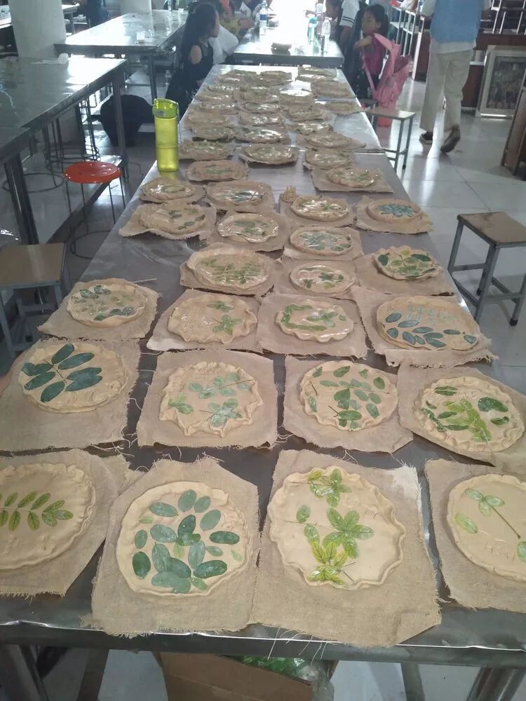 陶艺活动是一种创造性活动。今天的课堂上要制作的陶瓷树叶盘子,更是需要孩子们的想象和创造。通过老师的讲解,同学们了解到了陶艺所需的材料,专业陶艺流程,掌握制作陶艺作品要领及注意事项。紧接着就开始了自己的制作,制作过程中,孩子们专注的眼神,生疏的动作,泥巴弄脏了脸也全然不顾,虽然制作出的碗形状千奇百怪,可是孩子们还是乐在其中。