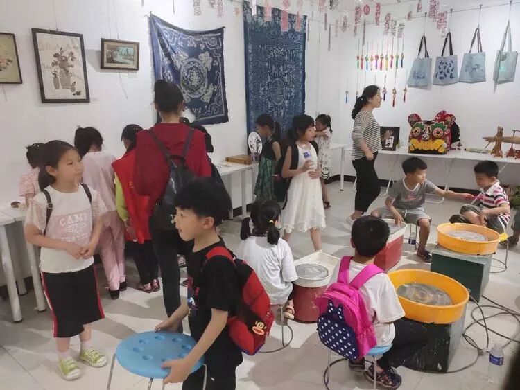 5月28日上午,郑州三人行教育机构的老师带领学生们来到二七区樱桃沟景区巾帼创客实践基地体验毛笔制作、陶瓷拉坯制作、陶瓷树叶盘子制作等三项手工课程。