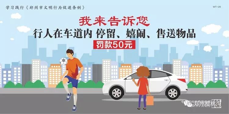 郑州市公安局交警支队宣传科科长贾伟介绍说,目前郑州市交警部门正在开展“非机动车、行人违法”暨“机动车不礼让斑马线”专项整治活动。非机动车、行人违法专项整治活动内容包括非机动车(含电动自行车)闯信号、停车越线、行驶机动车道、闯禁行上高架桥、骑车带人、逆向行驶、拦头猛拐、抢道行驶、乱停乱放;行人闯信号、不走人行道、横过马路不走人行横道线、有人行天桥的不走人行天桥、斜穿道路、翻越护拦等交通违法行为。