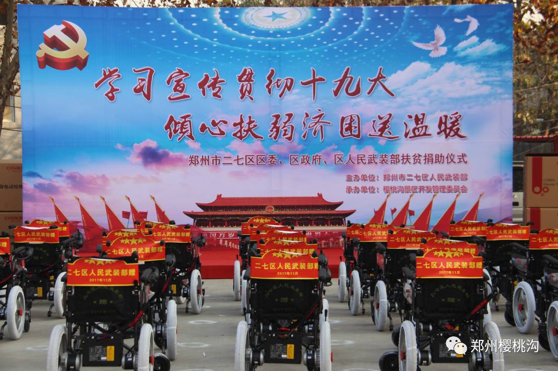 为积极学习宣传贯彻十九大精神,进一步动员辖区驻军官兵、干部群众,统一认识,精准发力,以更加明确的目标、更加有力的举措、更加实在的行动,坚决打赢脱贫攻坚战。二七区人民武装部党委本着“政府所需、群众所盼、部队所能”的原则,经个人申请、基层审核、人武部党委研究,报郑州警备区和二七区区委、区政府批准后,拿出专项资金13万元,购买全自动轮椅50辆,集中捐赠给袁河村、三李村、桐树洼村50名行动不便的困难群众。