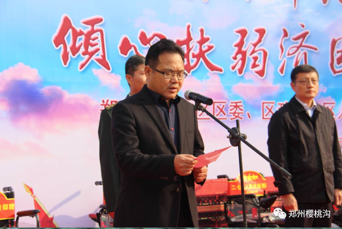 此次活动由二七区人民武装部部长祁贵云主持,解放军153医院院长张胜利带领医护人员参加了捐赠仪式和村民义诊活动。